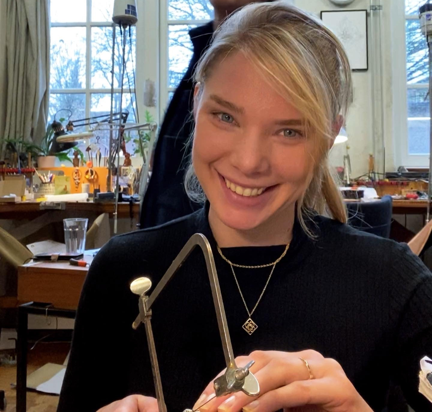 I slowly began to reconnect with my childhood dream of becoming an artist and jewelry designer, and eventually started my goldsmithing training with my teacher, Hans van der Leen, in Utrecht. There, I learned to work with fine gold wire, assembling pieces through traditional soldering techniques—held in place with clay, just as it was done in antique jewelry-making.